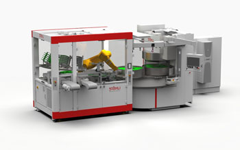 We are very pleased to introduce our new FH3-805 with automation. A 3 wheel flat honing and grinding machine Stähli FH3-805 with automation designed to handle round magnetic work pieces.